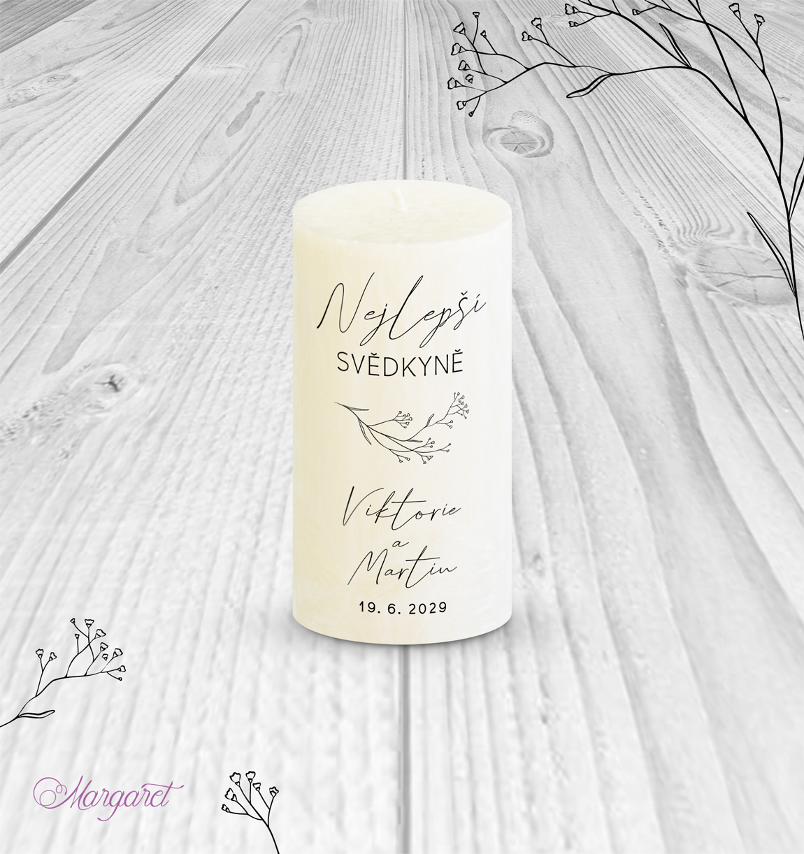 Nabízíme originální dárek pro svědkyni nebo svědka. Na svíčce jsou uvedeny vaše jména i datum svatby, takže se jedná o krásný dáreček.