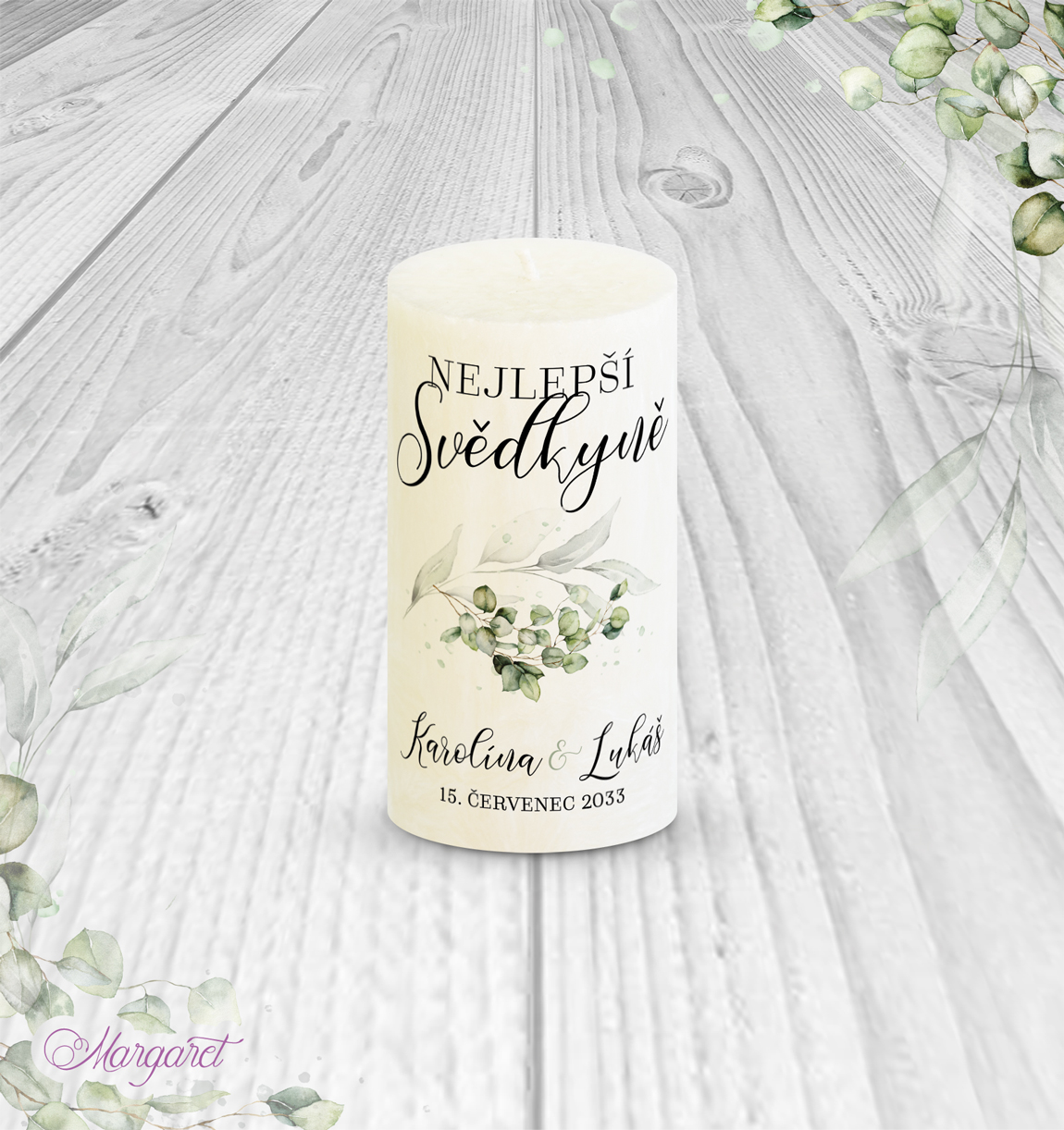 Nabízíme originální dárek pro svědkyni nebo svědka. Na svíčce jsou uvedeny vaše jména i datum svatby, takže se jedná o krásný dáreček.