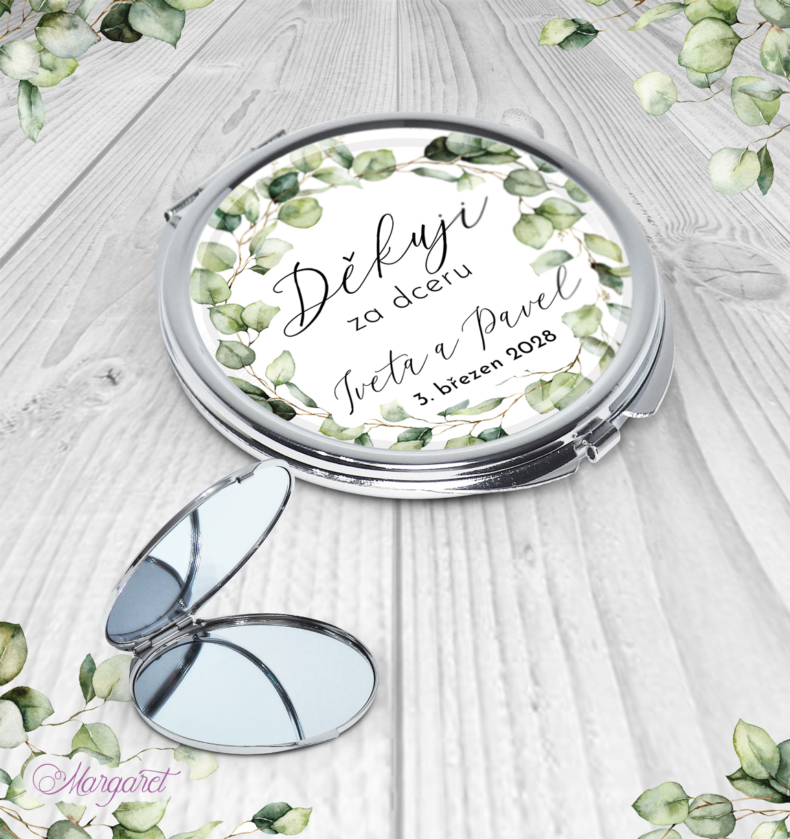 Zrcátko je otevírací, obsahuje 2 zrcátka – jedno zvětšující, jedno obyčejné. Po individuální domluvě je možné změnit text.