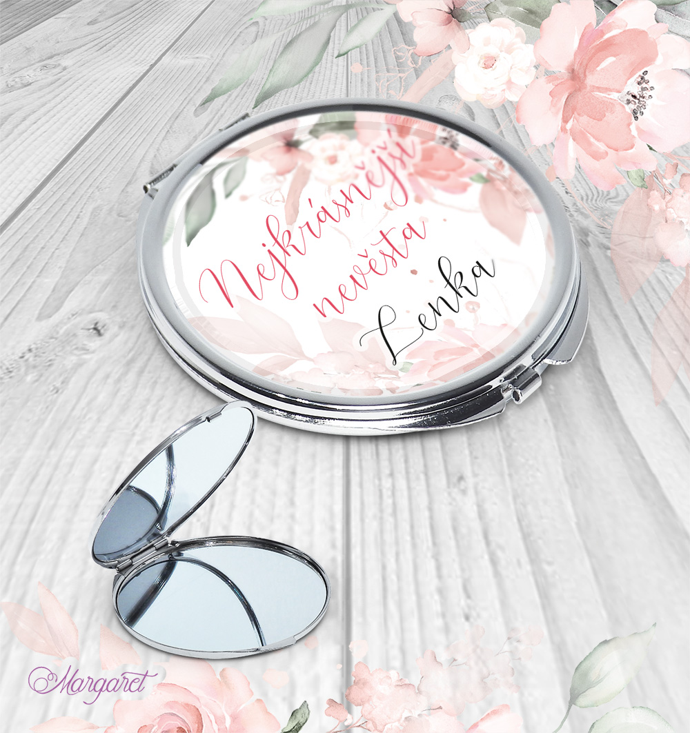 Hledáte krásný dárek pro nevěstu? Vyzkoušejte naše kapesní zrcátko, díky kterému si vždy vzpomene na svůj nejkrásnější den.