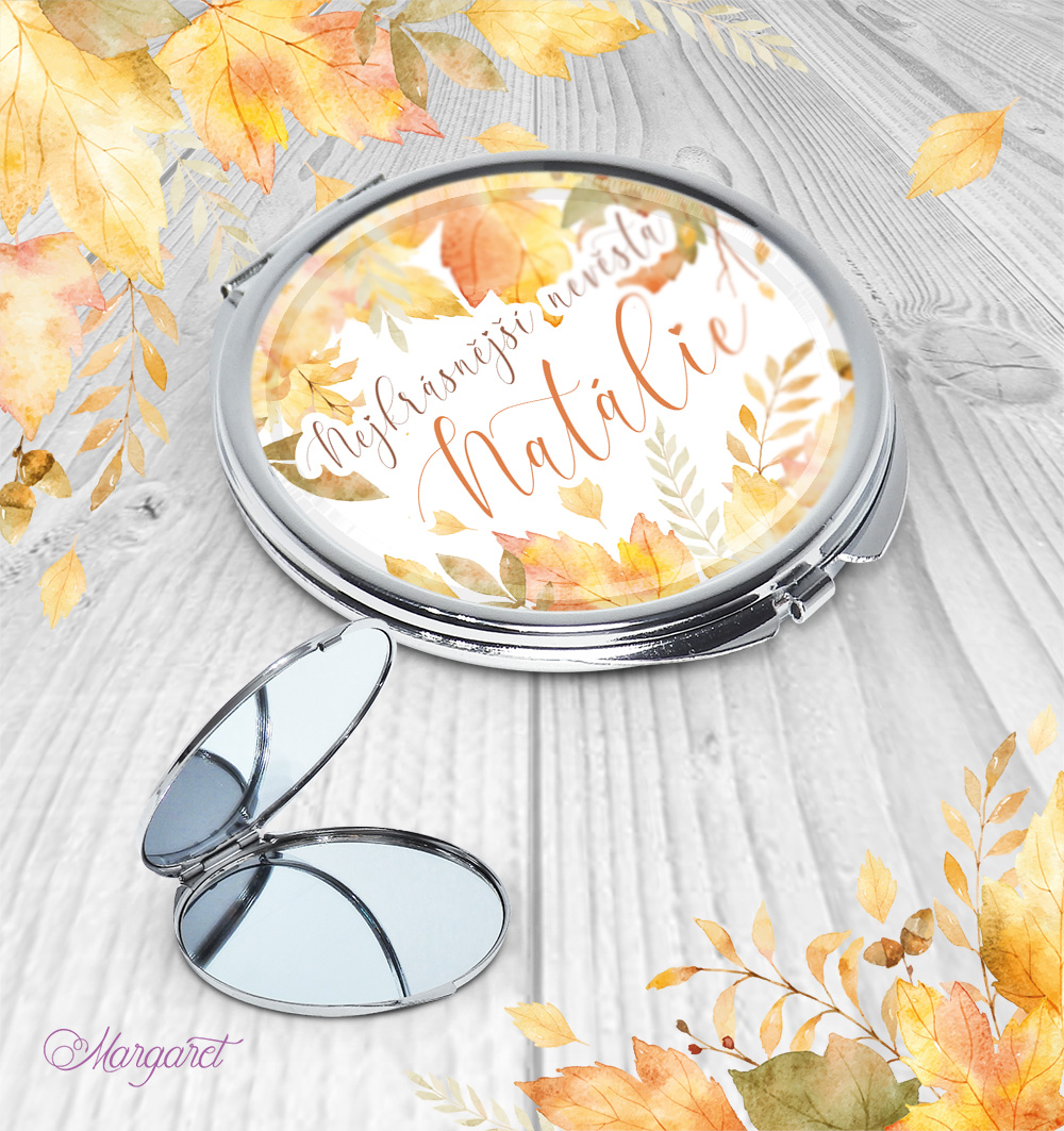 Zrcátko je otevírací, obsahuje 2 zrcátka – jedno zvětšující, jedno obyčejné. Po individuální domluvě je možné změnit text.