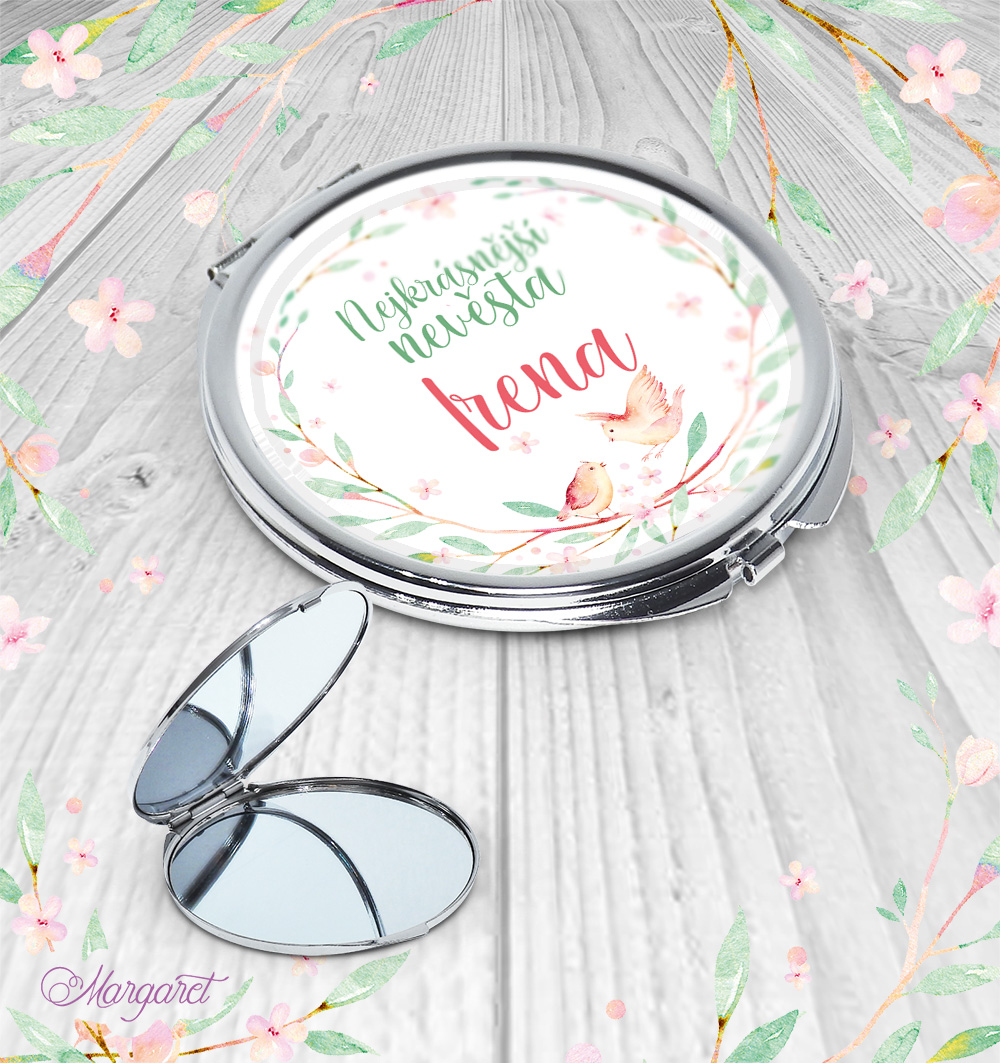 Hledáte krásný dárek pro nevěstu? Vyzkoušejte naše kapesní zrcátko, díky kterému si vždy vzpomene na svůj nejkrásnější den.